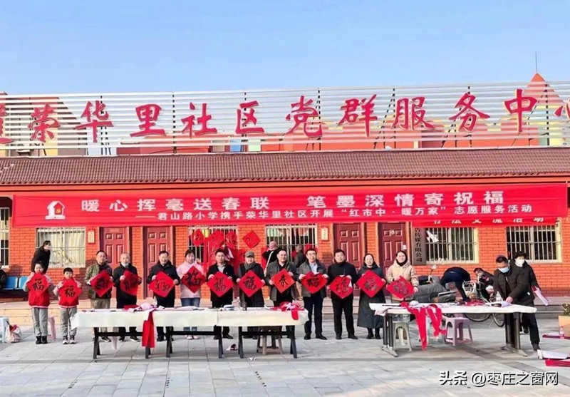 1月11日下午,接到區(qū)融媒體中心的電話,《棗莊之窗》小編驅(qū)車來(lái)到榮華里社區(qū),感受這里不一樣的年味氣氛。來(lái)到社區(qū)大院,看到書(shū)法愛(ài)好者、社區(qū)紅馬甲、學(xué)生們,還有周邊的社區(qū)居民早早來(lái)到大院忙乎了起來(lái),你搬案桌,我裁紙,他研墨水,準(zhǔn)備著一場(chǎng)書(shū)寫(xiě)春聯(lián)的筆墨盛會(huì)。