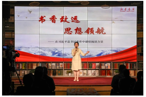 來自山東新華書店集團有限公司棗莊分公司的閱讀推薦人耿月君以《書香致遠 思想領(lǐng)航——在習(xí)近平總書記著作中感悟閱讀力量》為題,循著《習(xí)近平講故事》《習(xí)近平的七年知青歲月》等著作的脈絡(luò),探尋總書記的讀書足跡,汲取奮進前行的力量。