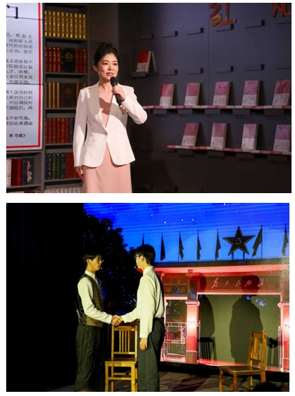 旅游管理系黨支部副書記王娟以《思想浸潤心靈 傳文脈繼往開來——習(xí)近平文化思想在浙江的溯源與實踐》為題,分享了《習(xí)近平在浙江》的讀書心得,情景劇《遺址邊的吶喊》,將思想性、藝術(shù)性及感染力高度結(jié)合,讓觀眾在情感共鳴中感受習(xí)近平文化思想的偉力。
